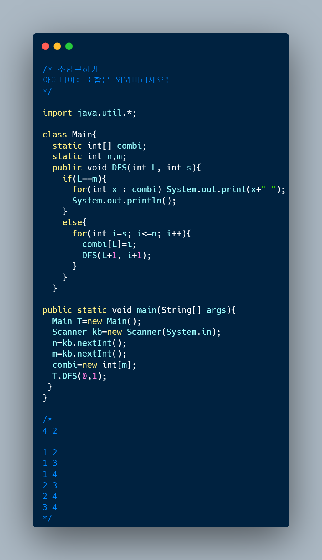 | 조합구하기 (DFS) (0) | 2022.07.25 |