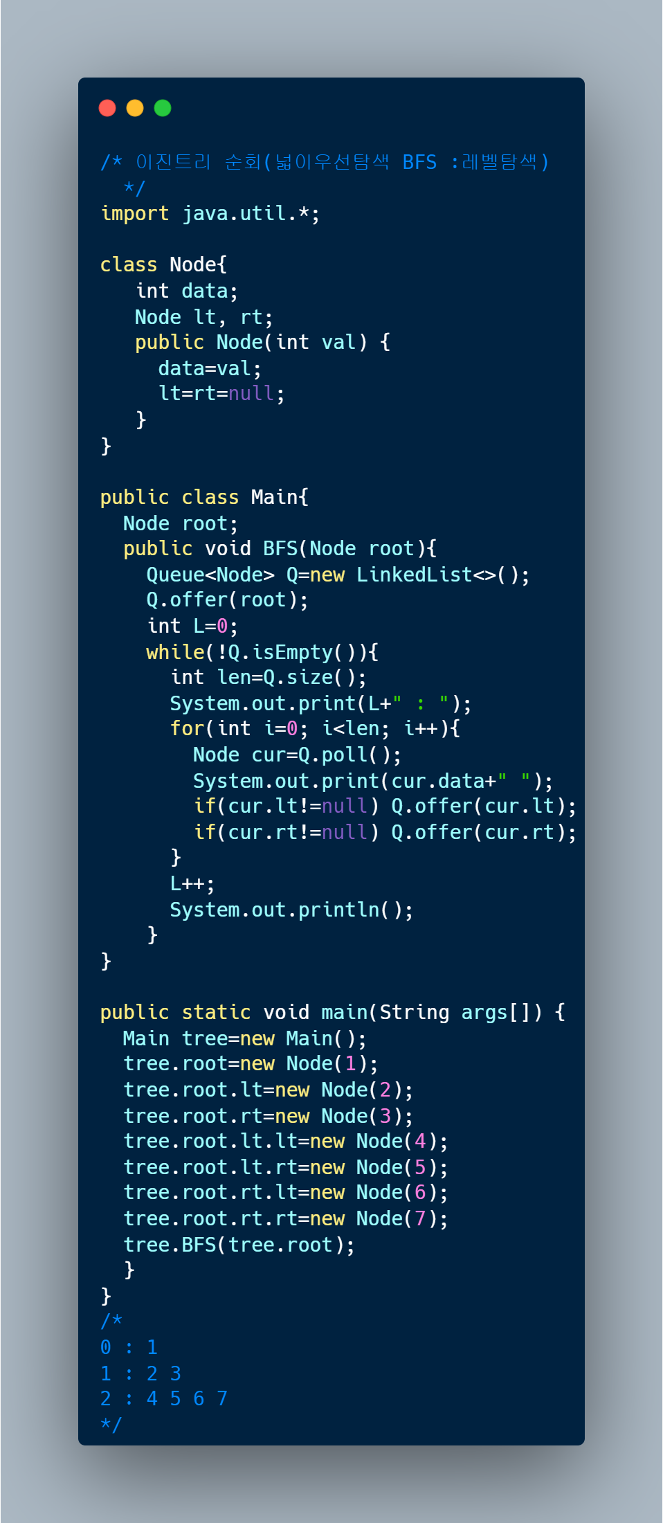 | 이진트리 순회(=넓이 우선 탐색 BFS = 레벨탐색) (0) | 2022.07.05 |
