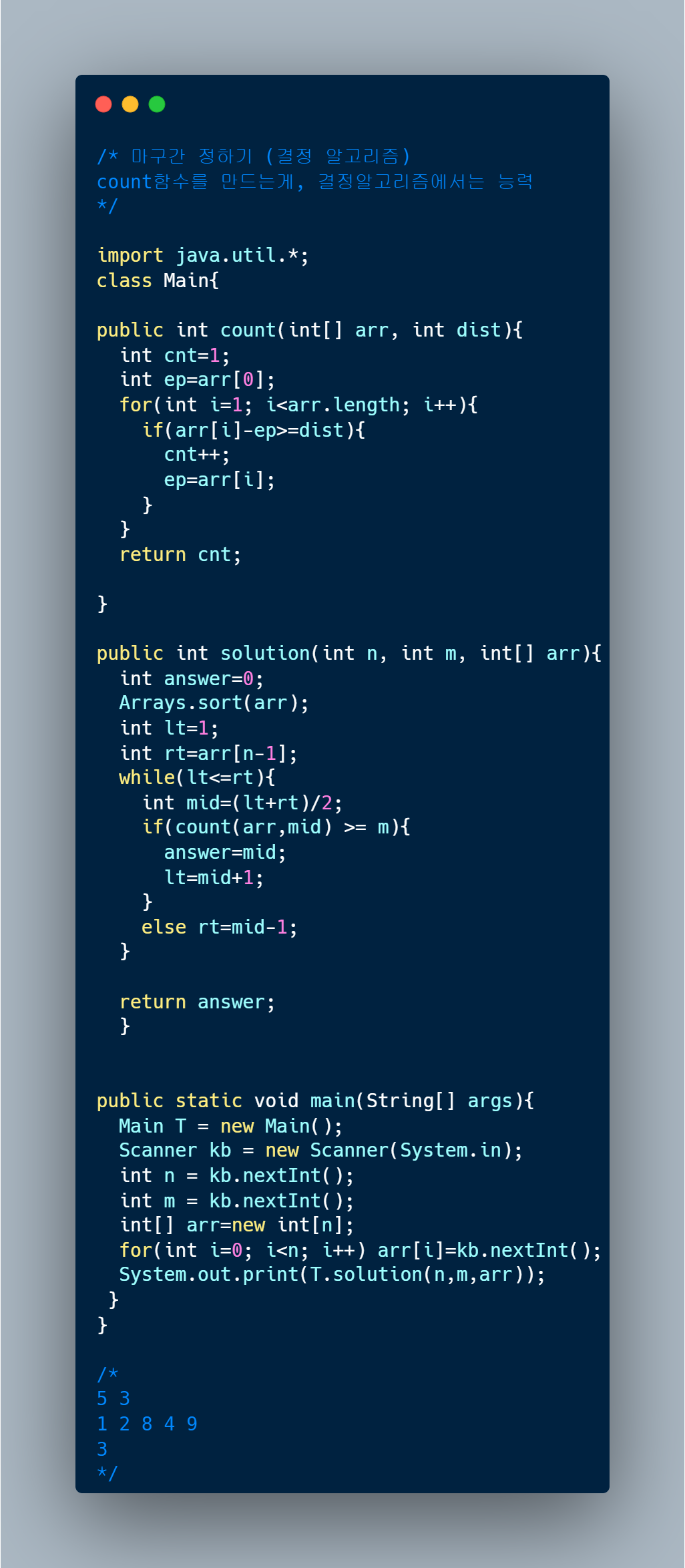 마구간 정하기(결정 알고리즘)