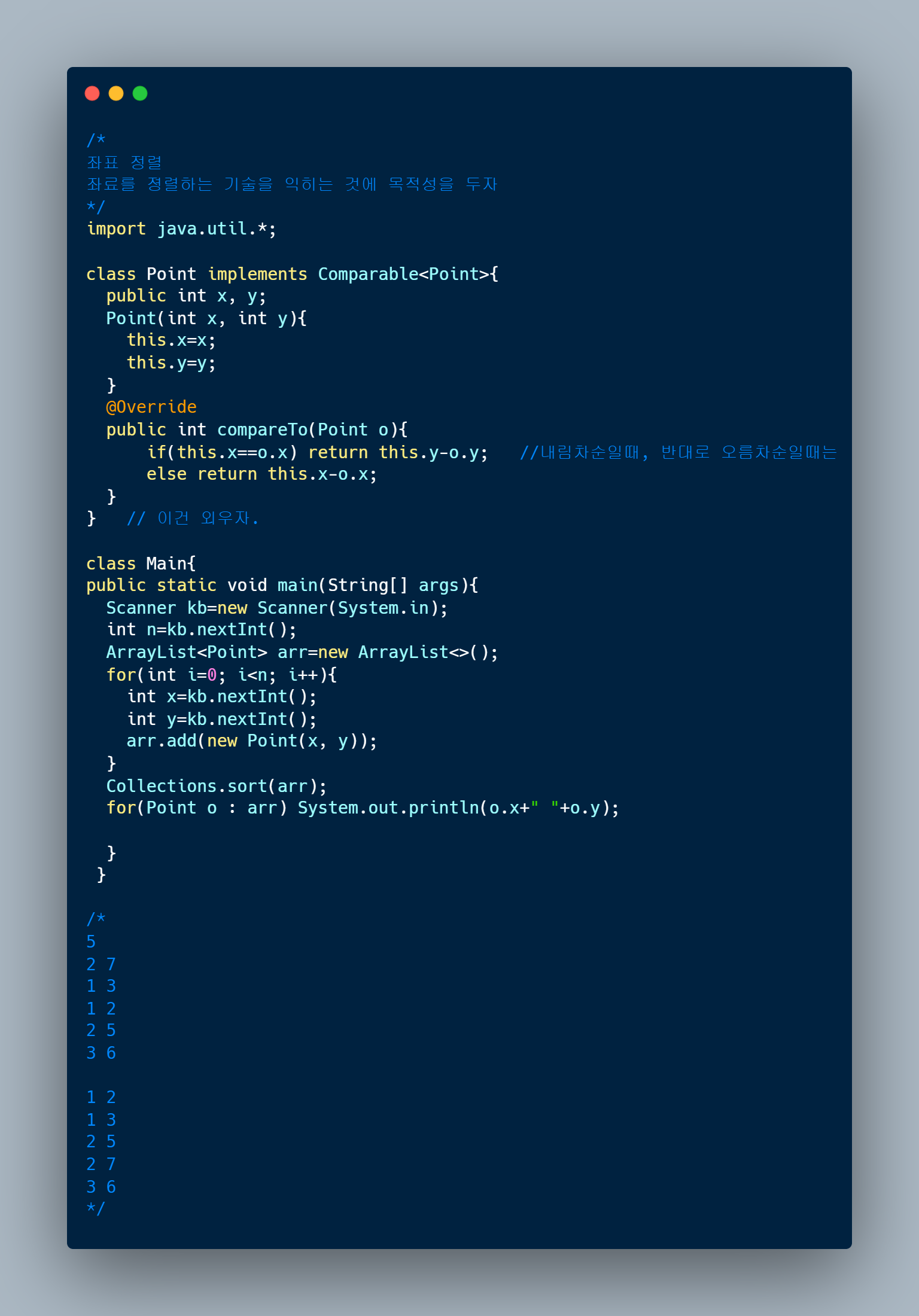좌표 정렬