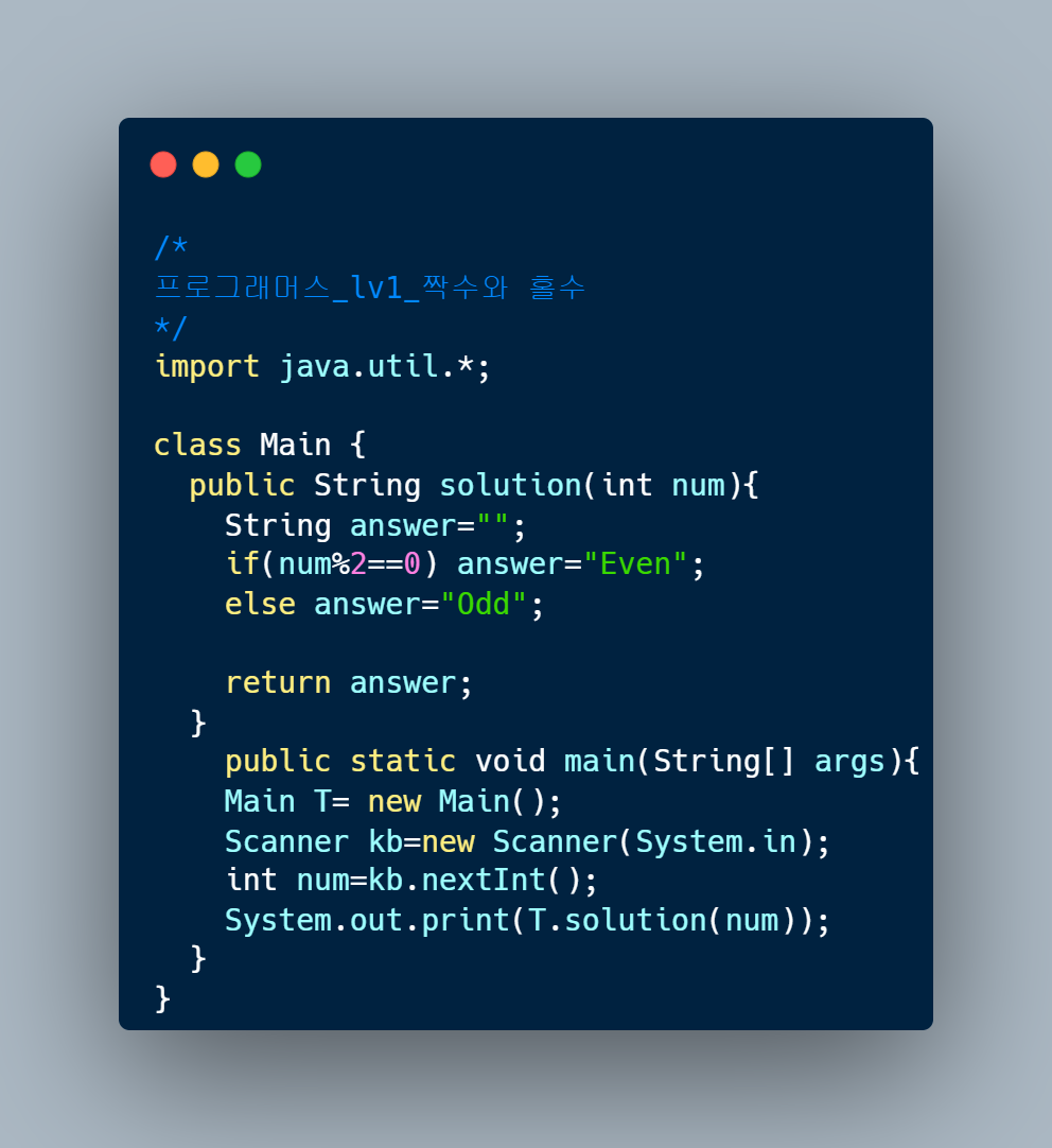 | 프로그래머스_lv1_짝수와 홀수 (0) | 2022.09.14 |